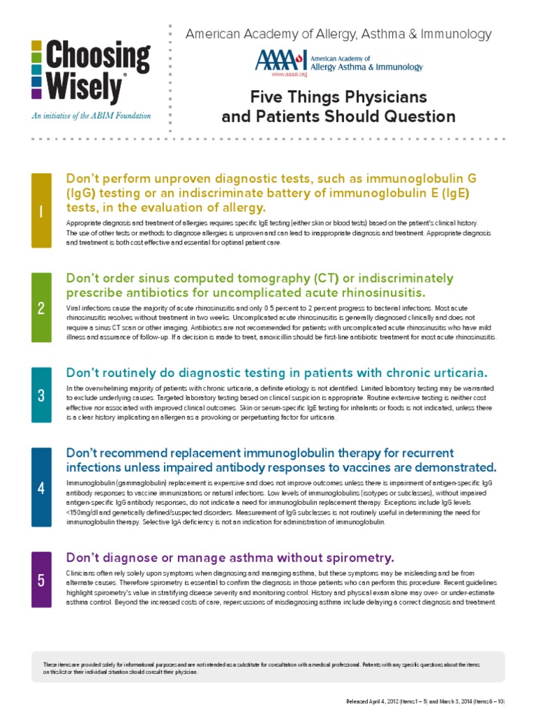 Choosing Wisely Recommendations Allergy Dermatitis